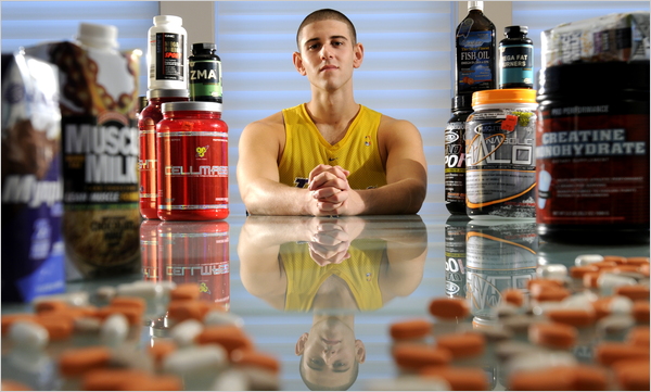 ![]() HOPE IN A BOTTLE Alex Feintuch with the supplements he has bought. By MAX ROOSEVELT (NY TIMES) PHOTO Rob Bennett for The New York Times OVER the course of a year, Alex Feintuch, a 20-year-old sophomore at the University of South Carolina, spent more than $1,000 on fitness supplements. Mr. Feintuch wanted to add size and definition to his muscles, and to “see results as quickly as possible.” He did research and tried dozens of products, with mixed results. “Of the products that I have bought, I’ve found many that work well,” he said. “But some don’t and were a waste of money.” The fitness supplements industry is primarily aimed at young men like Mr. Feintuch. Bodybuilding-related products — powders and pills with names like Muscle Milk, Amplified Mass XXX and N.O.-Xplode — represented a $2.7 billion industry in 2008, but one whose benefits are in serious dispute. The products are a subset of the more-familiar category of nutritional supplements, which includes mainstream items like vitamin-infused waters and energy bars. That market represented $25 billion in revenue in 2008, according to Nutrition Business Journal, a trade publication. Athletes seeking peak performance are often concerned about eating right, choosing foods that allow their bodies to function at their best — everything from bananas to Peak bars. But going the next step to taking a pill or powder elicits more skepticism. Young female athletes, for example, are more apt to stick with multivitamins, energy drinks and bars, doctors and trainers say. Male-oriented fitness supplements are not hard to find, but they are hard to figure out. Top-selling products like creatine, whey powder and nitric oxide are widely available under many brand names at drugstores and chains like G.N.C., but they are also minimally regulated, with a majority going untested by the Food and Drug Administration. And that, sports medicine doctors say, points to the problems: there is little or no uniformity among products, the labels are confusing and the ingredients are arcane. Often, the main active ingredient is simply caffeine. “It’s frustrating to not know exactly what I am putting in my body,” said Mr. Feintuch, who used a personal — and expensive — trial-and-error approach to come up with three products that seemed to work for him. Doctors and nutritionists say that people who eat a normal diet generally don’t need nutritional supplements, even if they exercise vigorously. But among the subset of people who already eat healthfully and want to bulk up in the gym, some supplements, when taken in sensible doses, can provide a lift. For instance, whey protein and creatine, which are meant to add bulk to muscles and raise the body’s ability to lift heavier weights, can, in some cases, help dedicated athletes become stronger faster, doctors and trainers say. But the dose recommended on the bottle may be much higher than the dose recommended by doctors. And for this reason and others, doctors emphasize that only adults should take fitness supplements (although high school athletes often do). A policy statement by the American Academy of Pediatrics advises children under 18 to avoid them. “Schools and other sports organizations should be proactive in discouraging the use of performance-enhancing substances,” said Dr. Teri M. McCambridge, who practices pediatric sports medicine in Towson, Md., and is the chairwoman of the American Academy of Pediatrics' Council on Sports Medicine and Fitness. Dr. McCambridge distinguishes between whey protein, which she considers to be a dietary supplement, and performance-enhancing substances like creatine and nitric oxide. Even so, she said, “the teenage diet already has more than enough protein.” “They don’t need the extra amount” that a whey protein powder would provide, she said. Further, most high school students “don’t know the importance of a recommended dose,” she said, and “there is a slippery slope when it comes to using other performance-enhancing drugs, like anabolic steroids and human growth hormone.” And taking more than the recommended doses of fitness supplements can be harmful. Too much creatine in the system can lead to stomach upset and muscle cramps, among other things. And most people are familiar with the side effects of too much caffeine. Jose Antonio, who edits a magazine called Sports Nutrition Insider and leads a nonprofit group called the International Society for Sports Nutrition, divides the popular supplements into three main categories: amino acid-based products, like whey protein and creatine; caffeine-based stimulants like nitric oxide, and healthy fats like omega-3 acids. Dr. Antonio is a proponent of several supplements, including whey protein and creatine, but says an athlete’s goals should determine his or her “strategy for use.” Creatine helps add size quickly, so it is good for people who want to bulk up, he said. Whey protein is more of a general fitness supplement and helps hasten the recovery of muscles after a workout, he said. Some personal trainers recommend nutritional supplements to their clients. “If you’re looking to bust through a plateau, taking five grams of creatine before your workout might help you do that,” said Steve Hoffman, a trainer in Cherry Hill, N.J. “It adds water weight to your muscle and helps you lift more.” For clients who want to intensify their workouts, Mr. Hoffman recommends products with arginine (an amino acid) or caffeine. He has experimented with such products and researched their effects, but he recommends caution for people who have not. “They’re awesome for working out — just be careful,” he said. Some athletes avoid such stimulants. Stacey Zimmerman, 25, an advertising account executive and avid runner in New York, consumes protein bars, electrolyte replacement gels but avoids products with creatine and nitric oxide. “I don’t like the idea of taking 