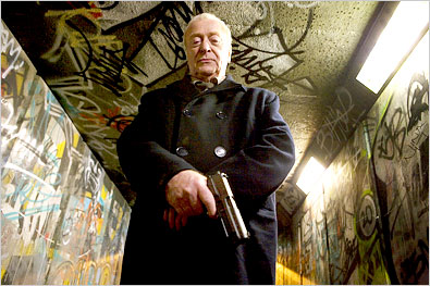 Charles Bronson, meet Michael Caine, who in “Harry Brown” matches you vigilante move for move in the annals of big, bad, bloody, disreputable entertainment. Sir Michael has prowled down other mean streets several times before in his storied career, notably as a shootin’-tootin’ gangster out to avenge his brother’s death in Mike Hodges’s hard-boiled 1971 thriller, “Get Carter.” Now 77, Mr. Caine no longer conveys the cold brutality he once did. But he brings a plausible suggestion of steeliness (and a familiar gift for waterworks) to his role in this flick as the titular former military man turned trigger-happy pensioner.