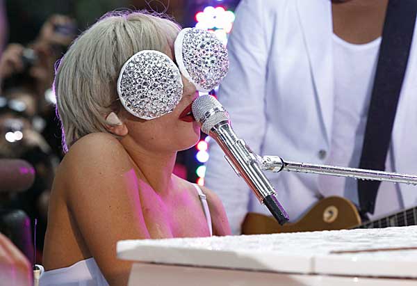 ![]() Lady Gaga loves her little monsters. After tweeting a promise Thursday of pizza, water and "a suprise 2moro!" to her fans camped out at New York's Rockefeller Center, the singer delivered on that surprise Friday, performing the new tune "You and I" in front of a crowd estimated at more than 18,000. Lady Gaga's half-hour live "Today" show performance -- which started in the heat and continued through the rain -- opened with the Gershwin classic "Someone to Watch Over Me" and included "Bad Romance," "Alejandro" and the new song, embedded below. (The tune starts around the 2:30 mark in the video, for those of you on a time budget.) Quizzed by host Meredith Viera, Gaga said yes, there are down sides to fame, but added that, "the kind of fame that I cherish is the relationship that I have with my fans, which is so pure and so wonderful.... ... You know, I don't go out very much, I stay in my hotel room and I write music, and I wrote a brand new album, and actually the big surprise today is I'm going to play a brand-new song from the new album."