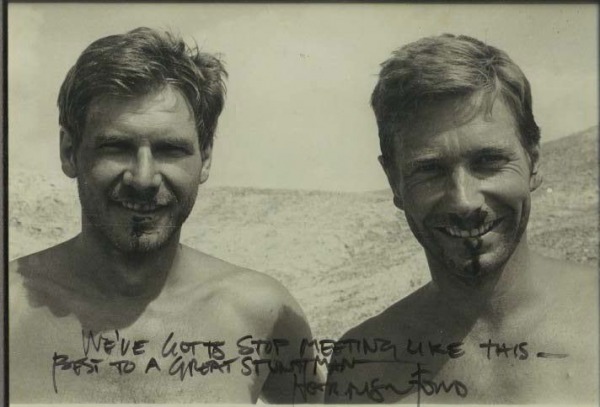 By now I’d met Harrison and he was great, very down to earth and welcoming, a wonderful guy. We both have the same outlook on life and professionalism. He really is a consummate professional. We worked very closely on all the fights. I’d work them out first before bringing Harrison in, and then choreograph it with him to make sure all the moves and the punches went the way he felt comfortable doing it. Then we’d take it to show Spielberg. And that’s how we worked together on the next two Indy movies as well.